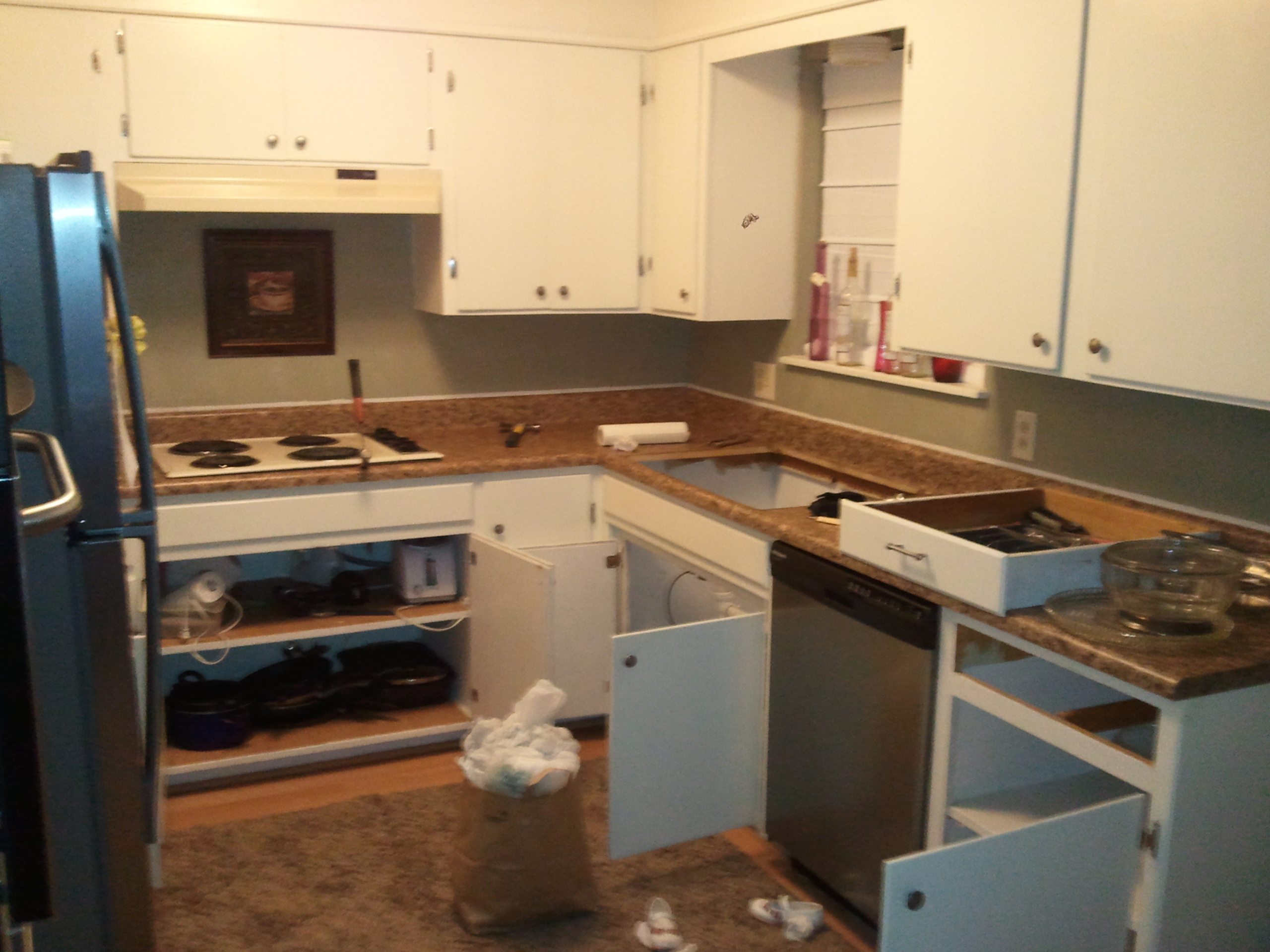 The dishwasher was so sad. The rust was really bad. There were so many pieces missing or on the verge of falling off. I don’t have any pictures of it, but trust me it was so so sad. Our new one is so much nicer!