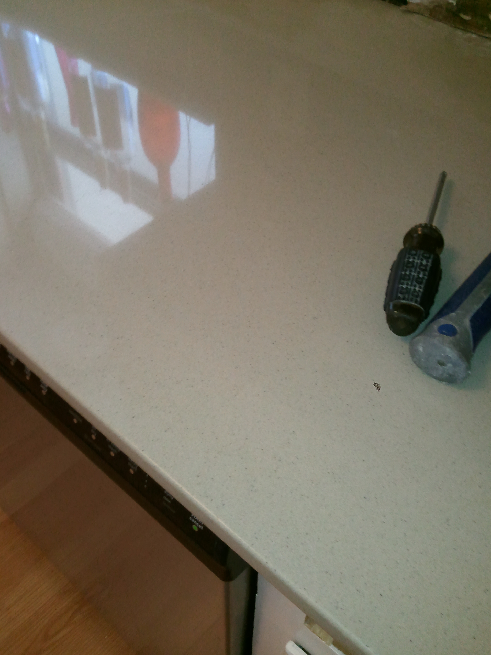 We purchased the counter from Lowes. They have a consultant in-store that will go over different options and set up a time to take measurements. They make it pretty painless. We chose a thin slab since it was cheaper and it really didn’t make a difference to me. Now I love it. I have not seen it anywhere and I love that it’s different. Lowes also offered a choice of sink with purchase of counters. We decided to go with a deep single sink.