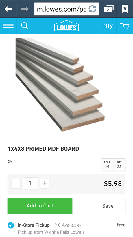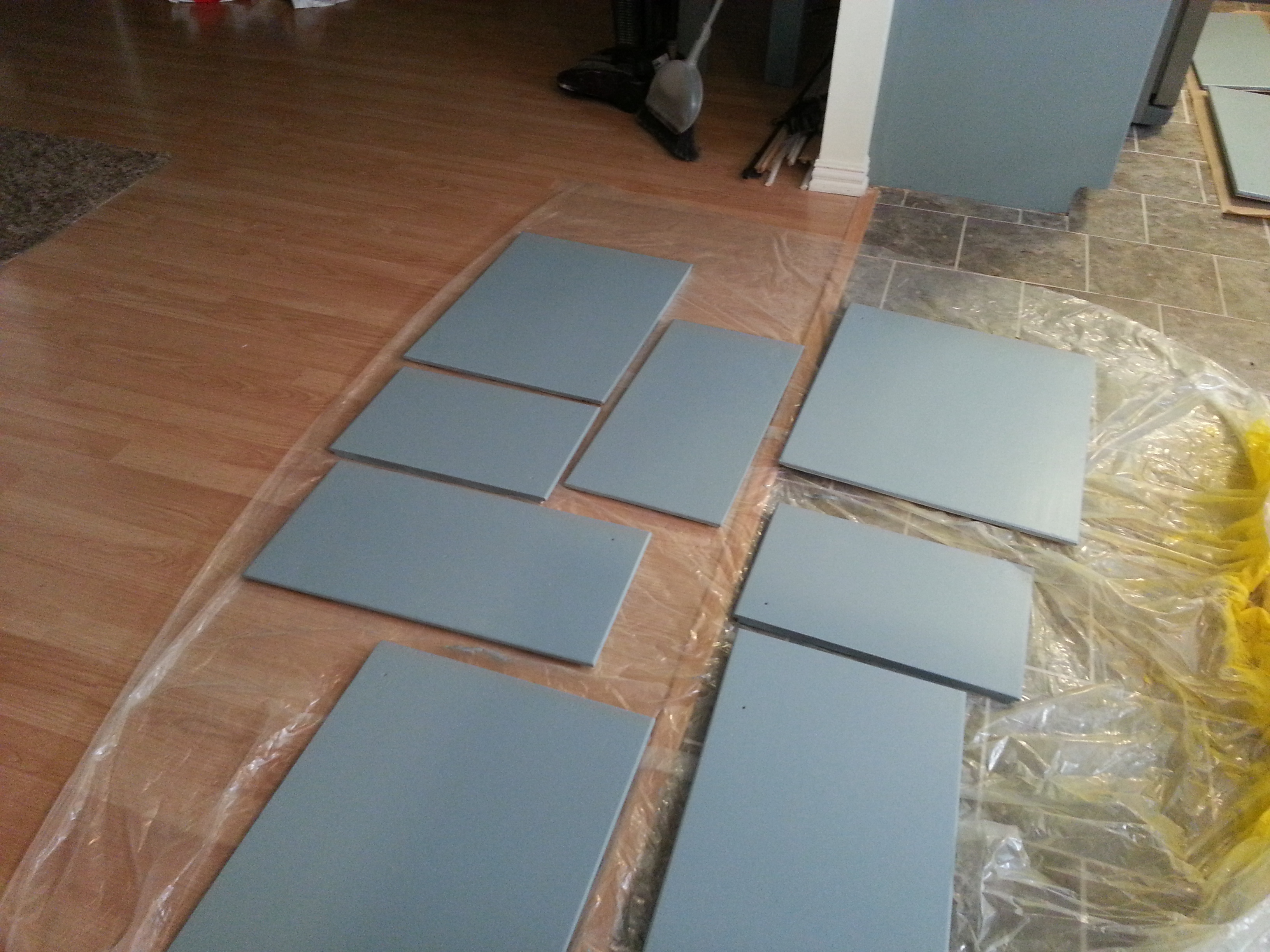 This was good enough for me for a while. But there was this nagging voice telling me the kitchen wasn’t complete. That nagging voice was my husband telling me we needed to replace the flat panel cabinet doors with something more contemporary. I knew we couldn’t afford new doors because they would have to be custom made. So I got on Pinterest and did some research on updating cabinet doors. I found a lot of great tutorials but one really spoke to me because it was cheap cheap cheap! Shauna Mailloux at beautifulmatters.com has the genius idea to use Lowes wooden yard sticks as trim. I went to Lowes to check out prices and sure enough, the yards sticks were the way to go. They were cheaper than the lowest priced project wood. So I loaded up my cart and headed home. I started with the bar to try it out.