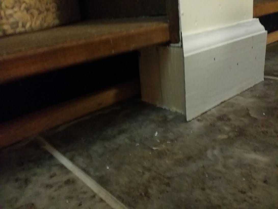 I was worried about putting permanent baseboard under the dishwasher in case we need to do any repairs to it or the next owners want to replace it. So I used a hinge to make a baseboard door. It was not as complicated as it seems. I just measured the width of the dishwasher, then added a half inch on either side for clearance. I built it just like rest of the baseboard and added the hinge. See, not so bad.