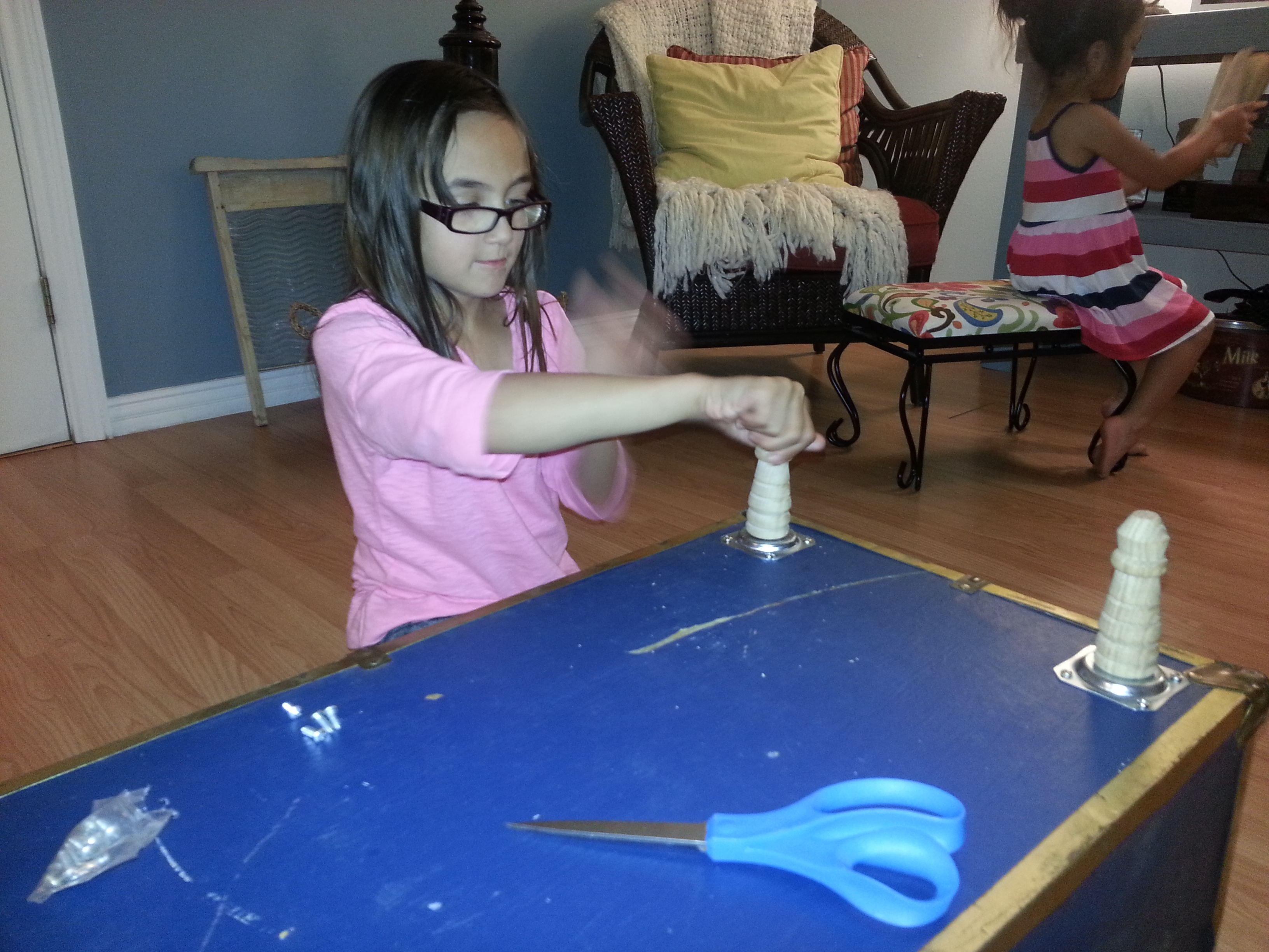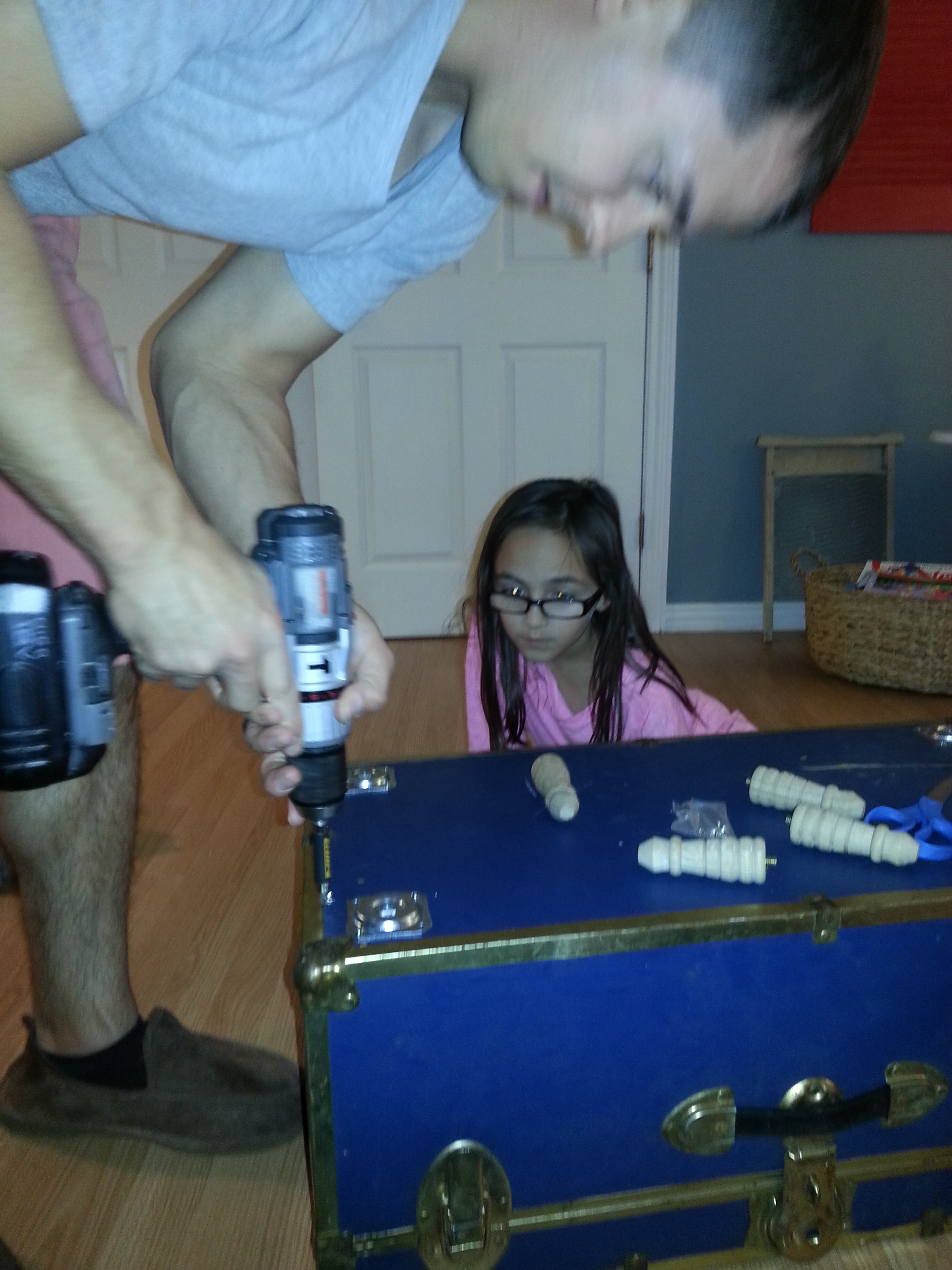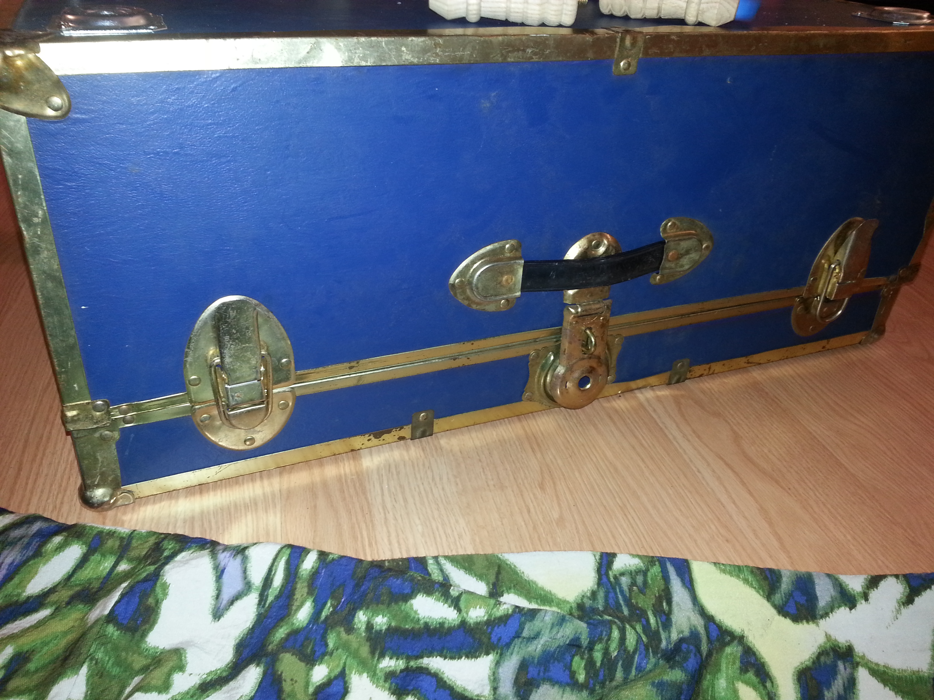 I spray painted this one for my room because it was pretty dingy. Clean your trunk well, spray with primer, then paint. Okay, so this took 10 minutes.