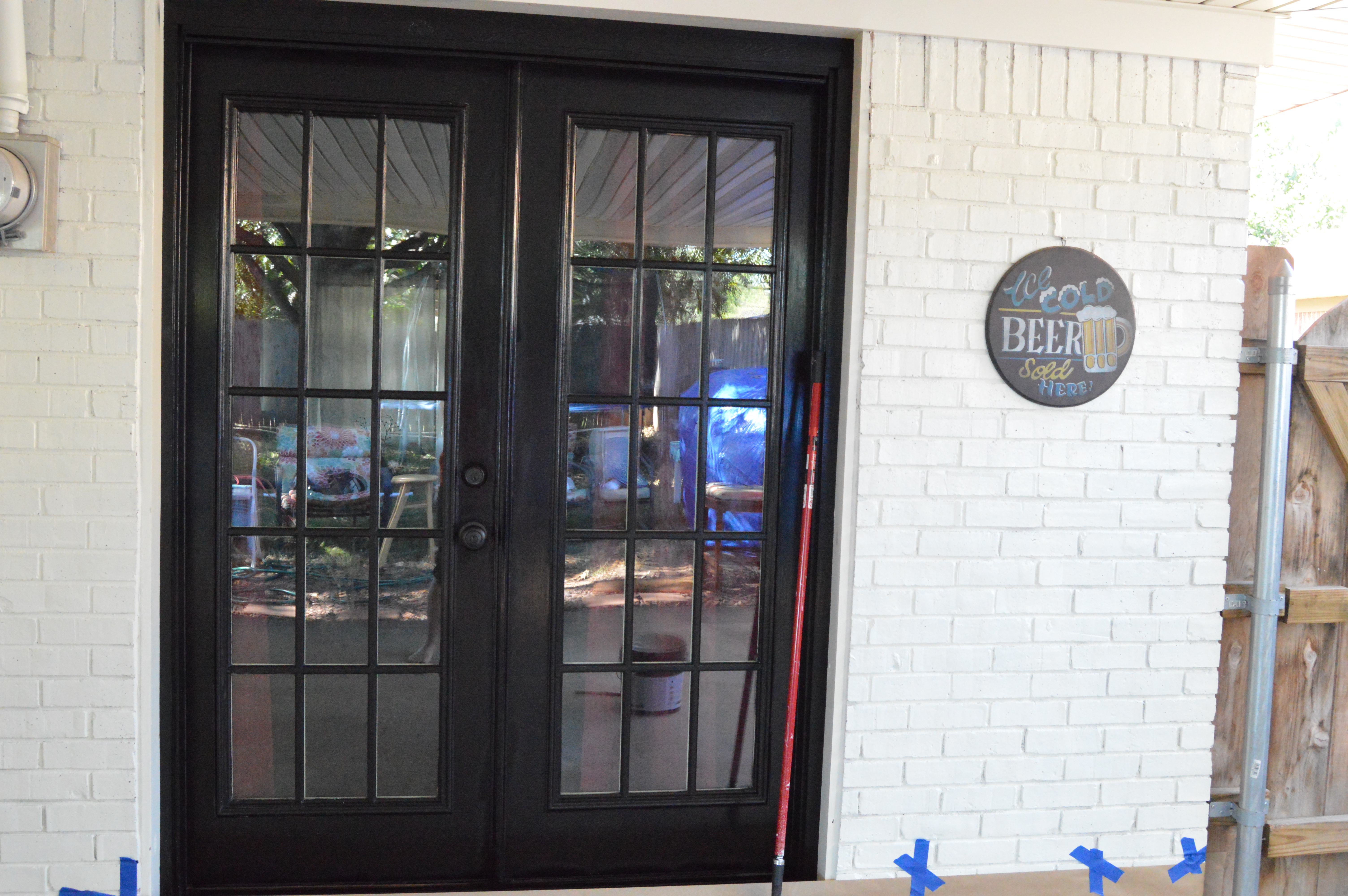 I FINALLY had a productive weekend with our patio!!! I got the 2nd coat of paint on the walls, painted the French doors, and sort of fixed the floor (I’ll explain that later).