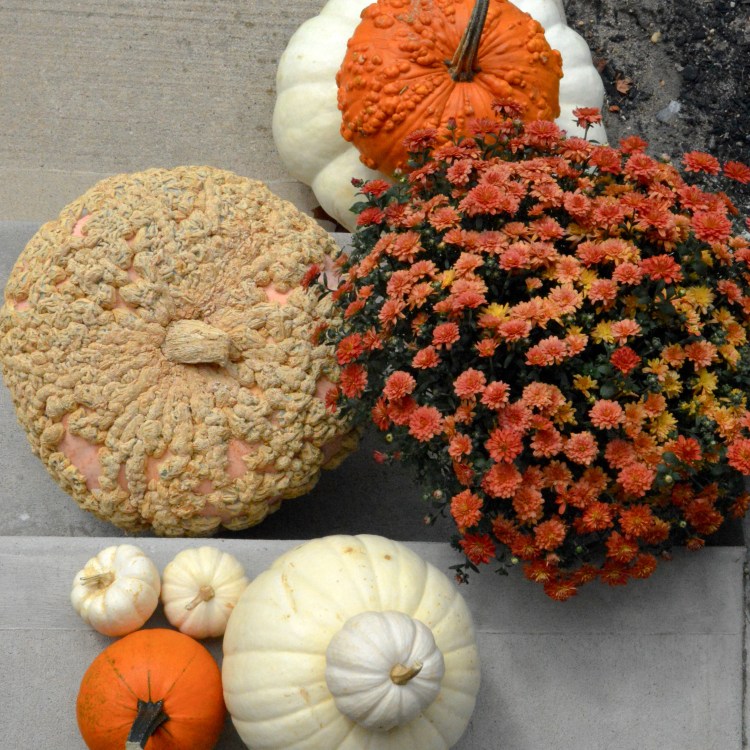 I was really inspired by Liz Marie’s pumpkin-full porch so I tried to achieve a similar look. Isn’t this beautiful?!