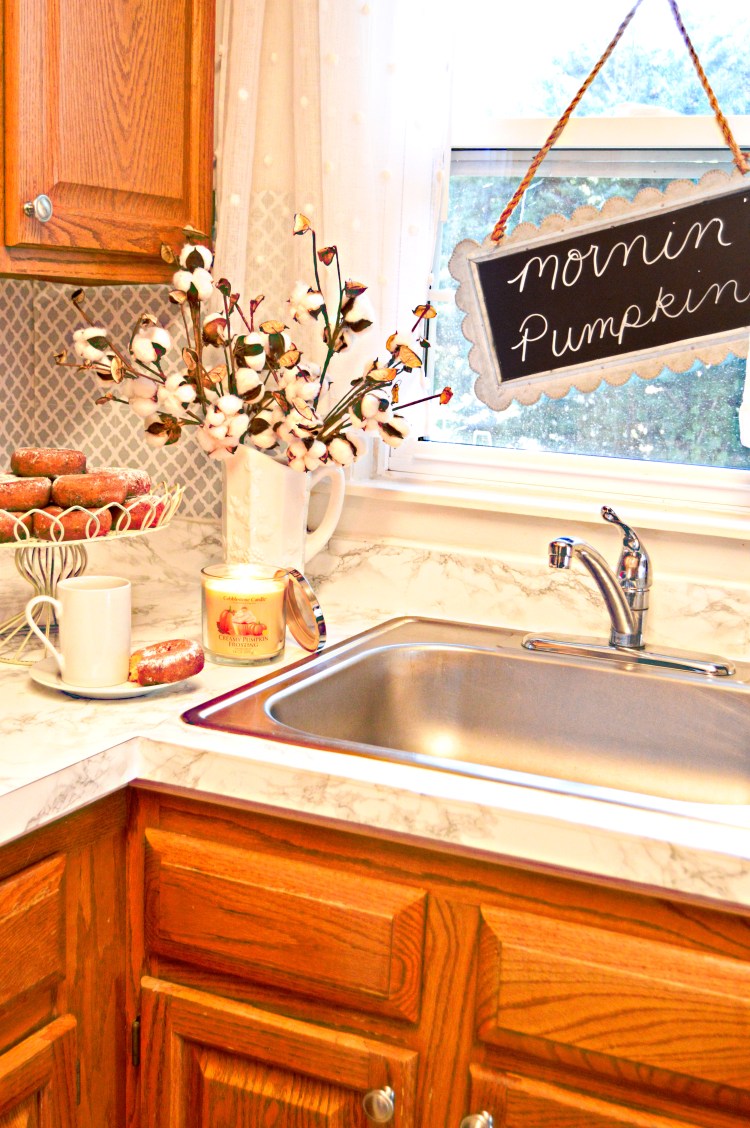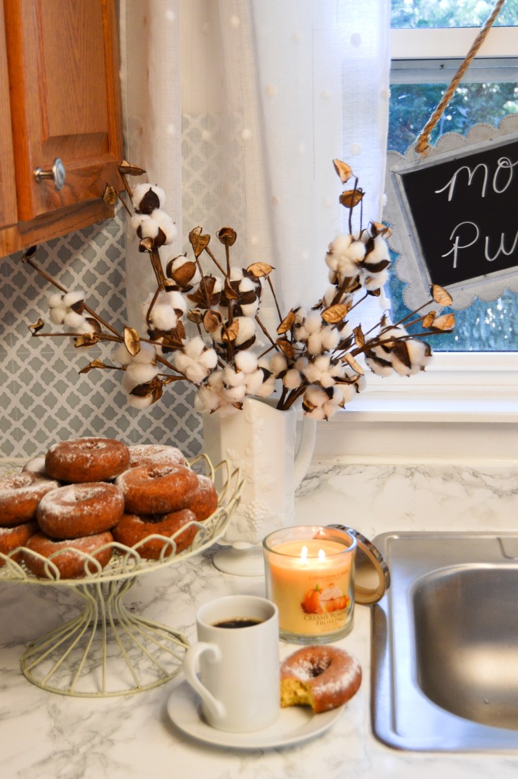 One of the first things that comes to mind when I think about Fall is baking. I do tons of baking this time of year and now my girls have grown to love baking. It’s something we love to do together and when the holiday season rolls around, they start talking about all the goodies we are going to make. We don’t have much space for holiday decorations in our kitchen, but I knew I had to give it a little Fall love since we will be spending so much time together in here this season.