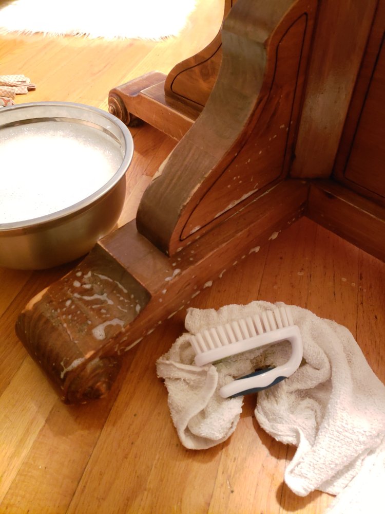 I wioedbitndown once again and applied one coat of wax with a paint brush. You can buff it after it has dried for 24 hrs if you would like a glossy finish, but I chose not to. I like the more matte look. Wax is not as good a protectant as Polyurethane or Polycyclic. I will need to reapply every six months to protect the paint, but the base won’t come in contact with any food so it will work.