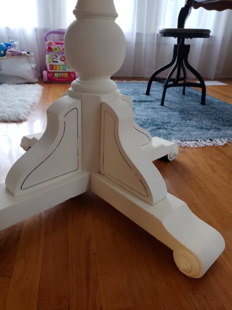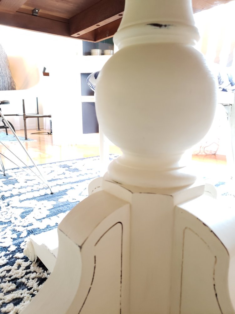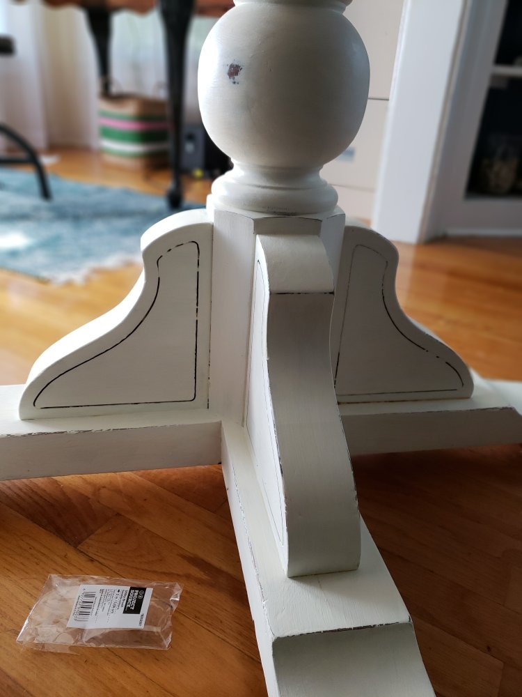 I do have some good news though. I chalk painted the base and gave it a coat of wax. It was quick and easy and a nice break from the table top. I used the Waverly chalk paint and wax.