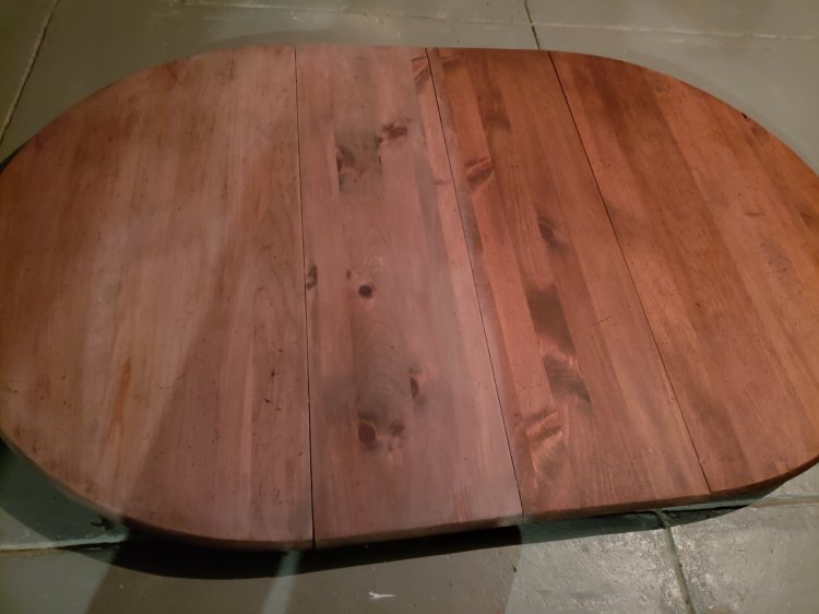 It’s supposed to give your wood a whitewashed and weathered look. Here it is on half of the table. I think it’s going to work, but who knows at this point.