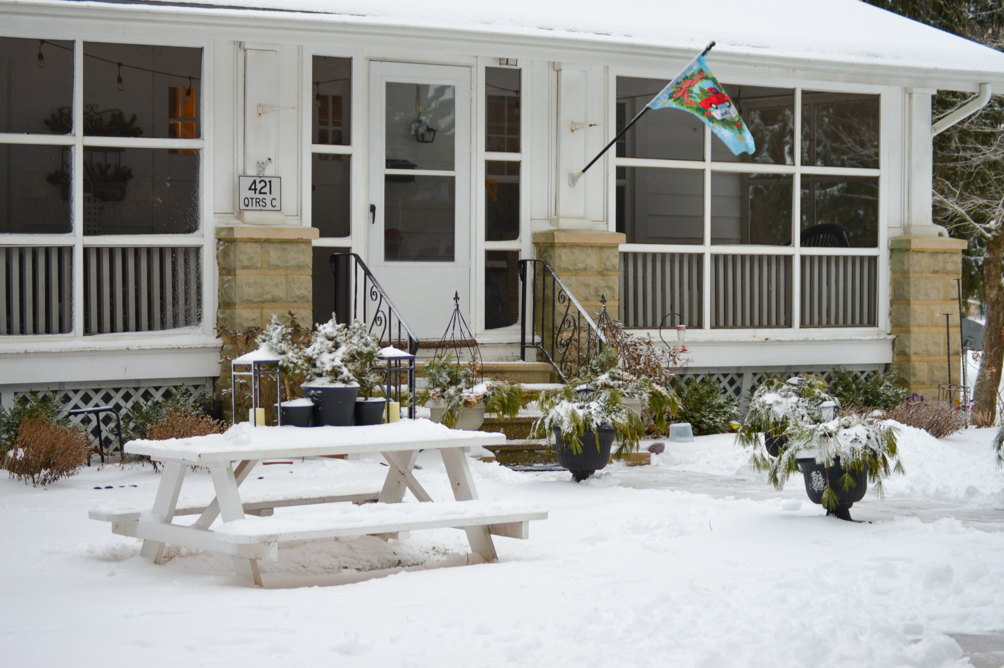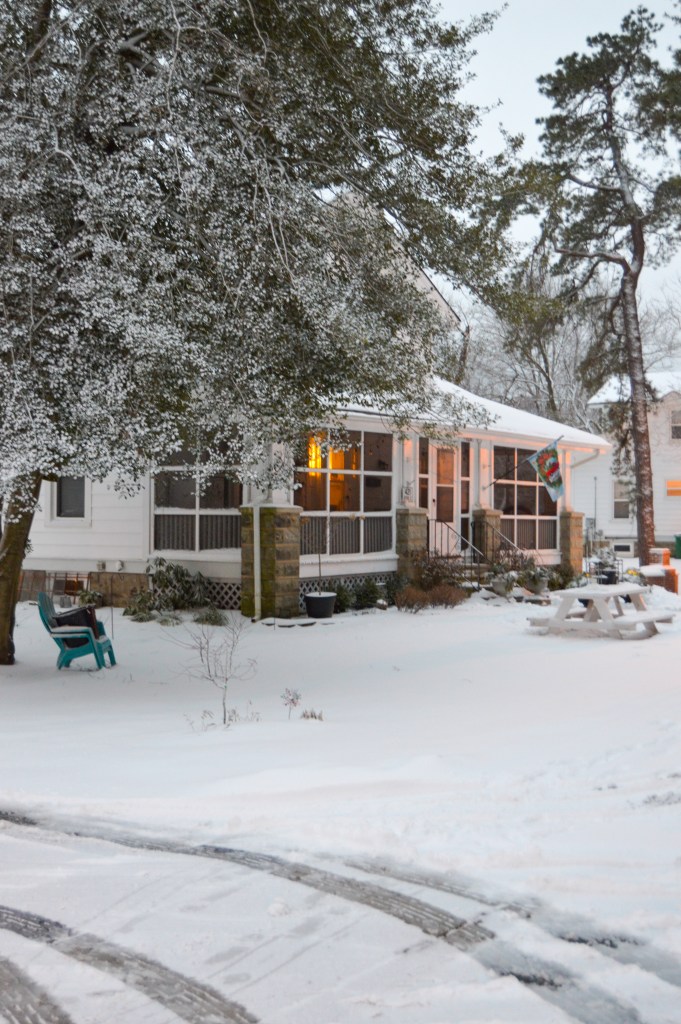 Our home is sort of camouflaged by the white snow.