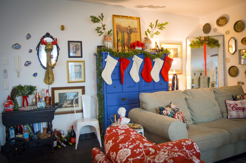 And lastly our master bedroom got a big Christmas makeover. Our large tree is in here and it lights up the balcony from the window. My husband said it’s so pretty to see when he comes home from work every night.