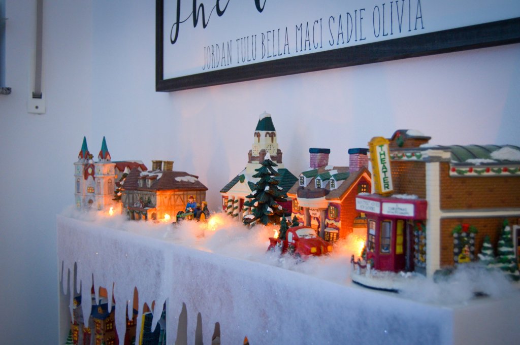 I didn’t put the Christmas village up last year and one of my girls made sure to tell me she wants it up this year. I put it here in our library and I love it all tucked into the shelves with the books.